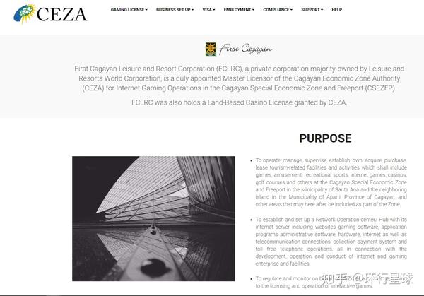 2003年,被称做First Cagayan的公司是第一个获得合法网络博彩牌照的机构,曾在美国上市,总部在菲律宾北部卡加延省,受到Cagayan Economic Zone Authority的管理。